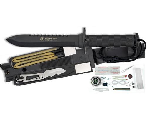 - El kit incluye: funda de polimero de alta resistencia – Piedra para afilar – Gomera – brujula – Hoja extra en acero inoxidable con descamador y pelacables – Espejo – Pinza de depilar – Hilo – Aguja – Alfiler de gancho – Fosforos – Lapiz – Bisturi – Linea de pesca – Plomadas – Anzuelo – Banditas adhesivas.